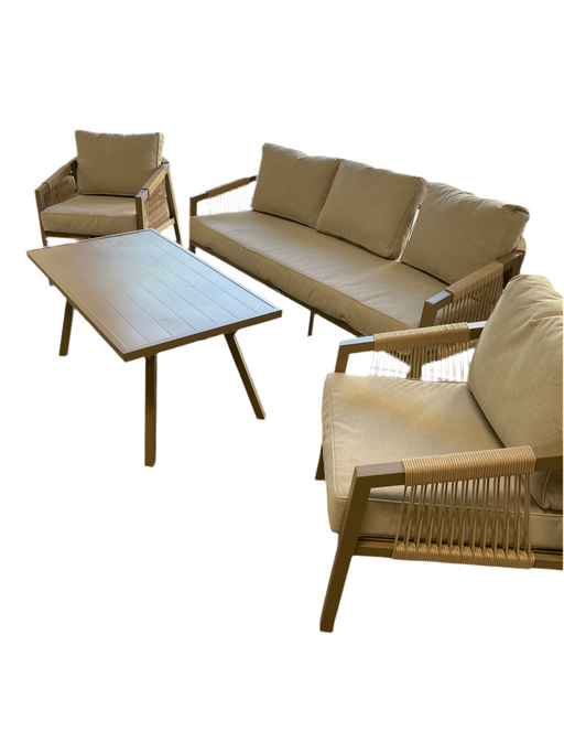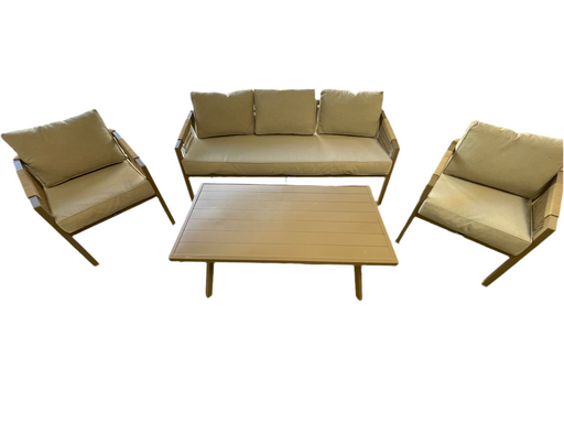 Osos Home & Patio (AZ)In stockDETAILS: This 6-piece aluminum outdoor patio set features a sleek beige aluminum frame complemented by stylish rope accent details, offering a con...
