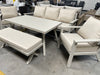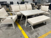 Designed for both lounging and dining, the set includes a spacious sofa, two armchairs, a versatile bench seat, and a matching dining table, making it ideal for entertaining or relaxing with family and friends.